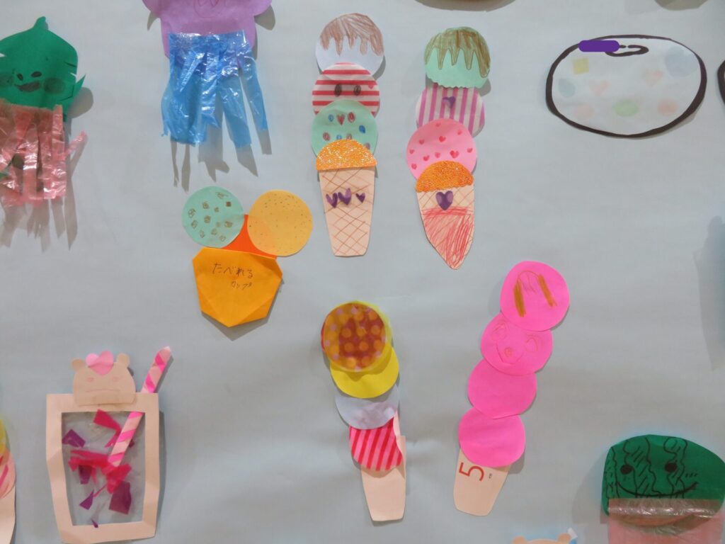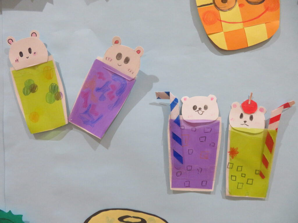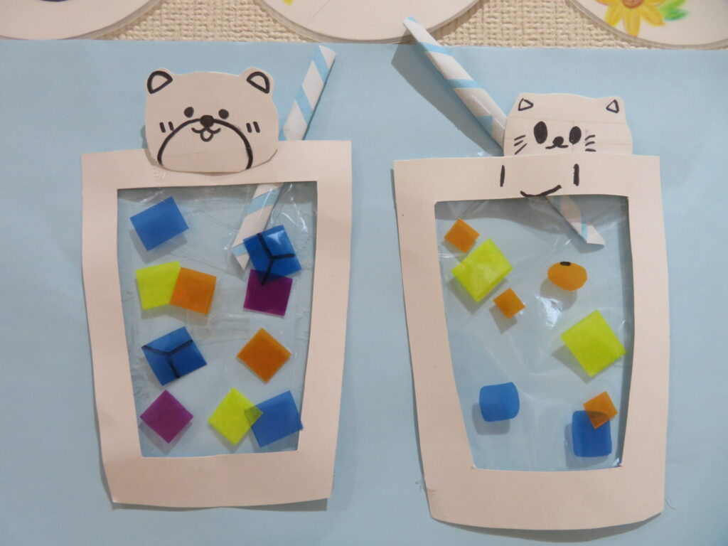 はさみで上手にちょきちょき切って貼ったらカラフルジュースの完成🍹