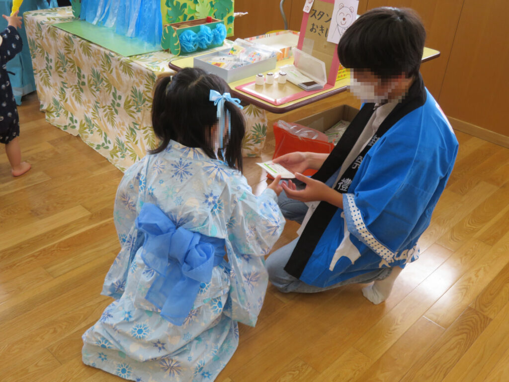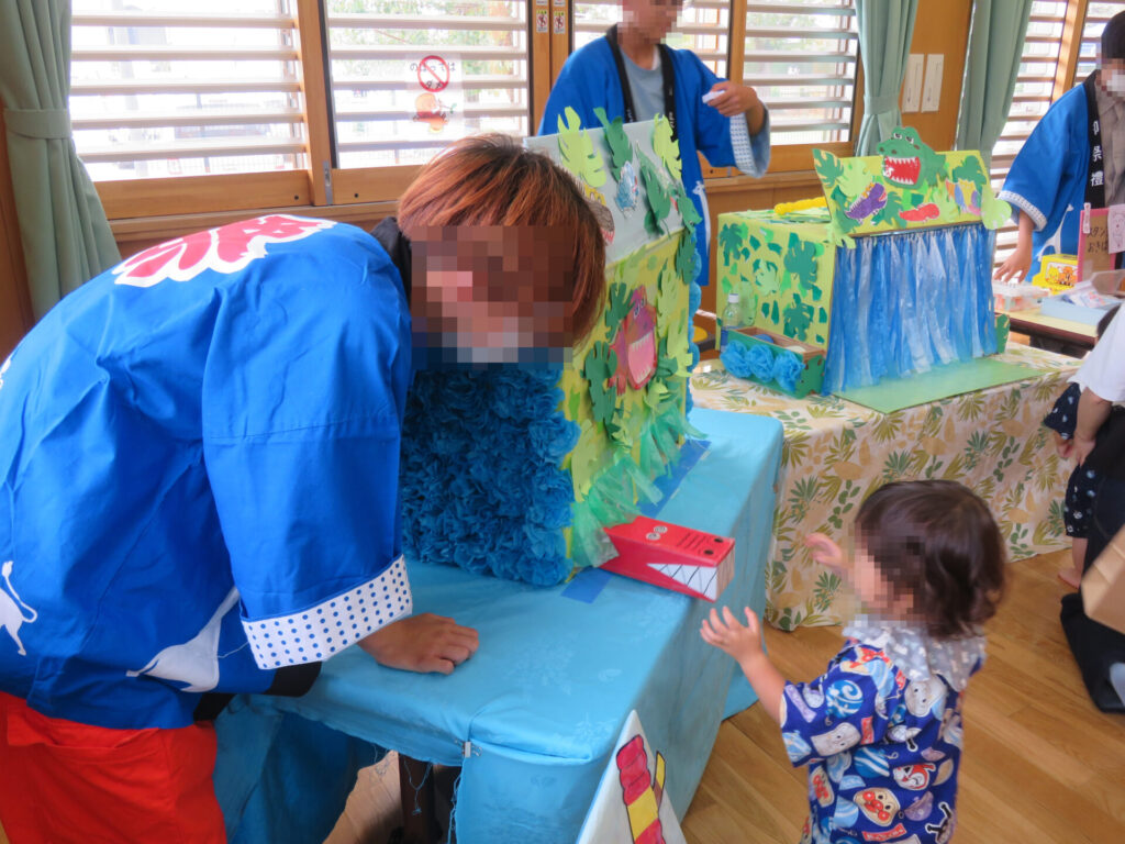 今回のじどうかんまつりは「五感で楽しもう!」のテーマにちなみ、各コーナーで体験した感覚の部位(目・耳・鼻・口・手)のスタンプを押してもらいました