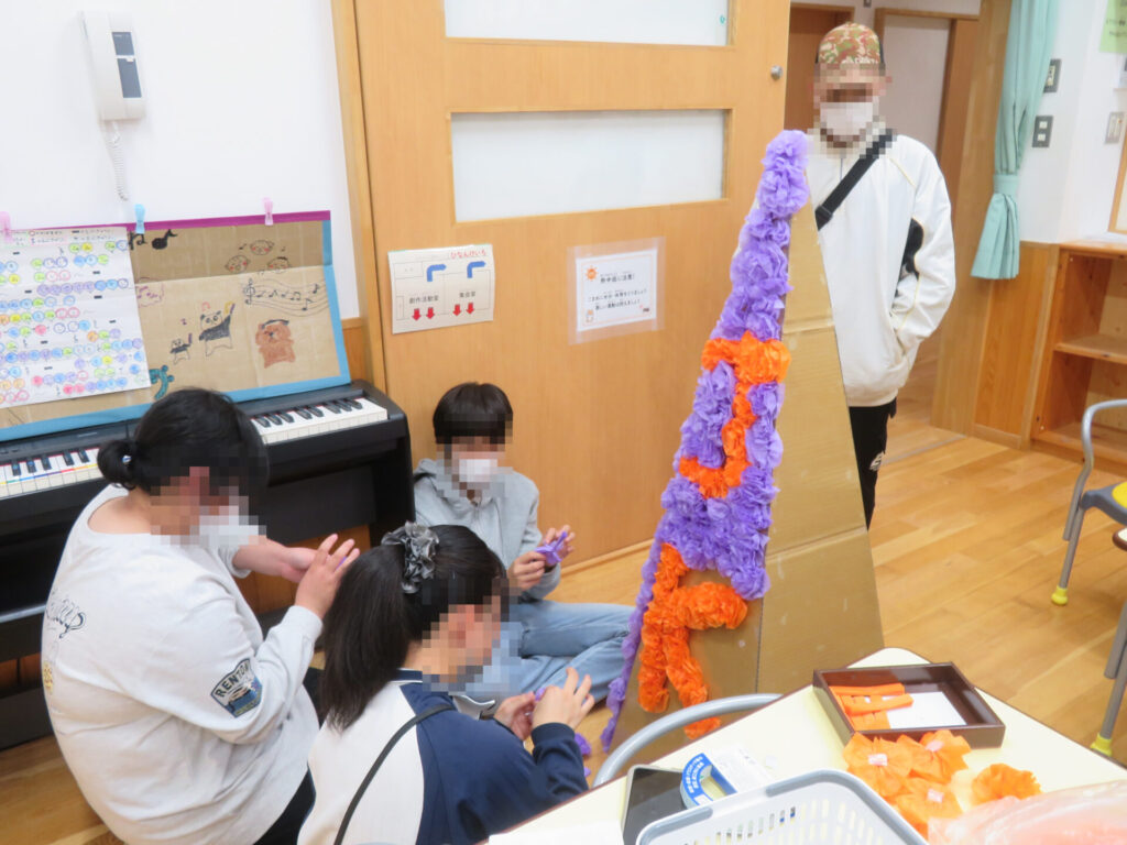 ハロウィンツリーは中学生・高校生のお兄さんお姉さんがお手伝いをしてくれました🙌