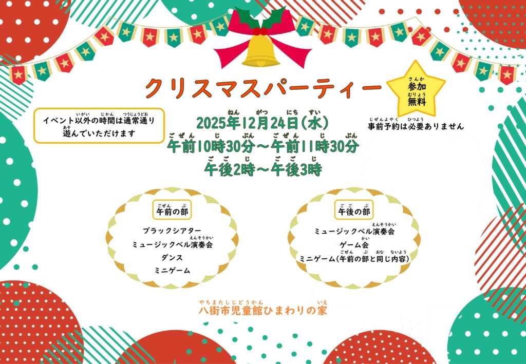 12月がつ24にちすい)に児童館じどうかんでクリスマスパーティーをするよ!