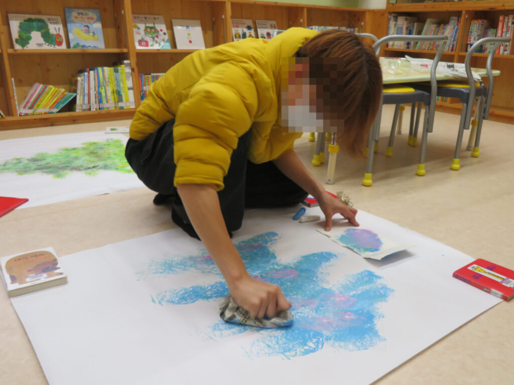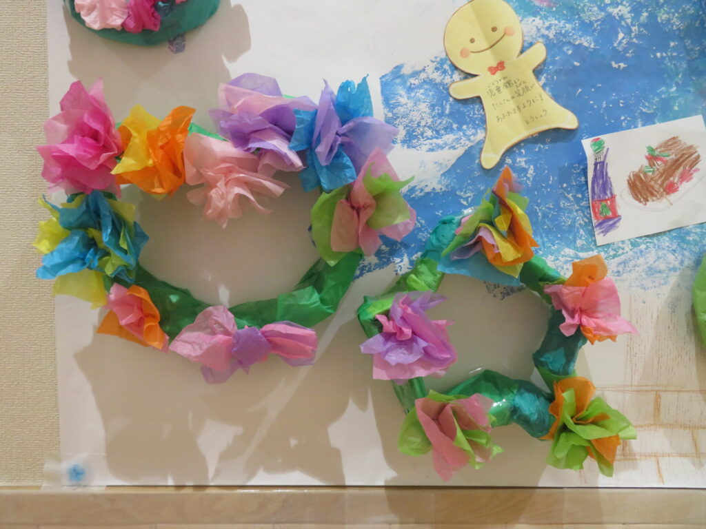 かざりはお花紙はながみをくしゃっとまるめたりいてみたり🎵