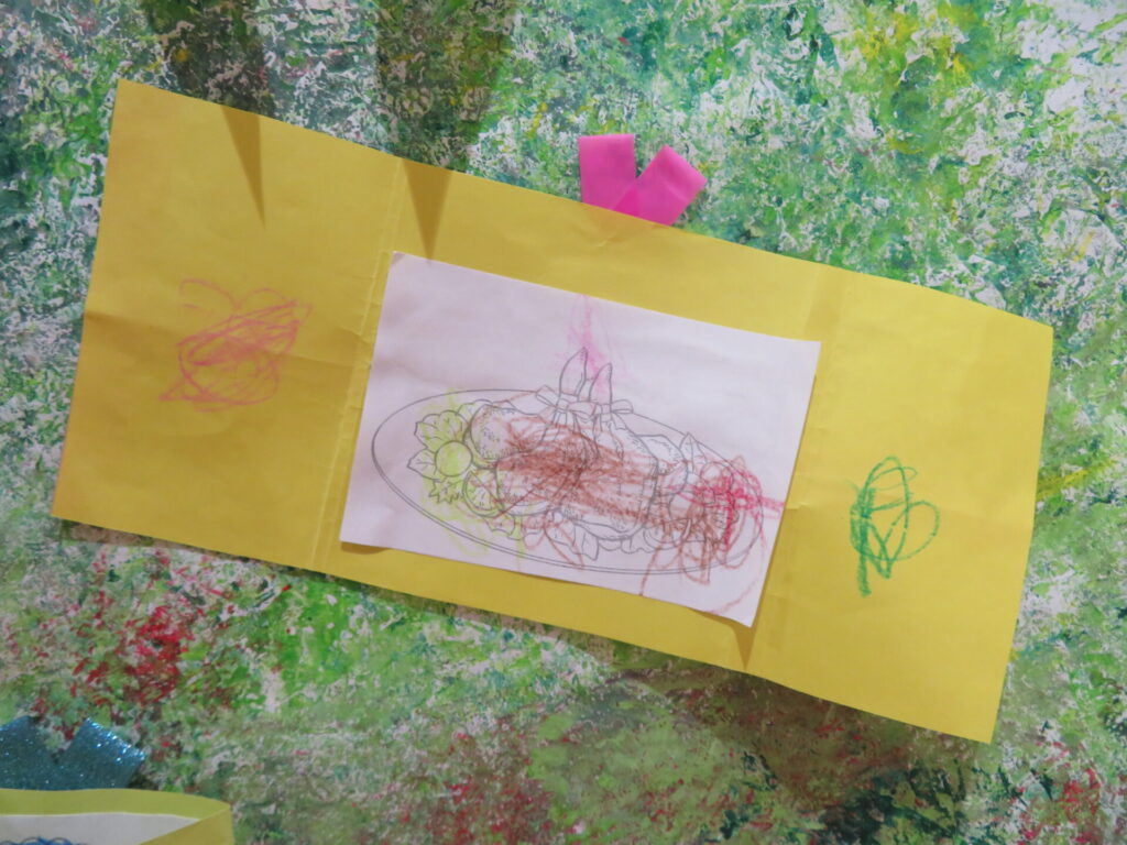 きないろのシールをってかざけるのもたのしかったね😊