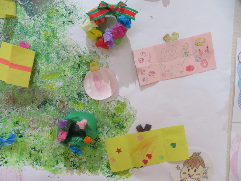 みんなのカラフルな作品さくひん児童館じどうかんのクリスマスをいろどってくれてありがとう🌈
