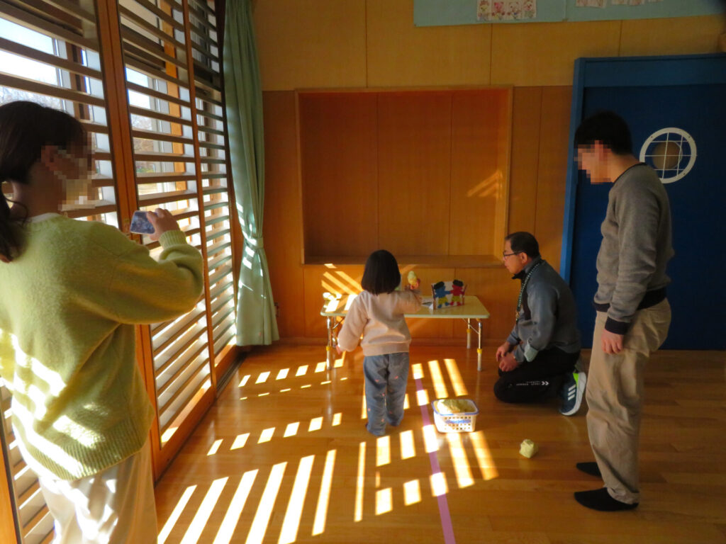 今年も感染症が流行しているため、「こんこんくしゃん」のペープサートと