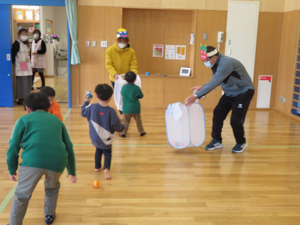最後は館長鬼&お兄さん鬼と玉入れゲーム!